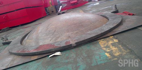 漲形機是水泊焊割(SPHG)在積累了多年的焊接工藝和設備調試技術并吸收國外先進技術的基礎上自行開發、研制的一款封頭漲形專用設備。它是利用我們常見和常用的液壓系統制動液壓缸,利用模具把工件壓緊,通過高壓水機往模具里注水來完成漲形的。
